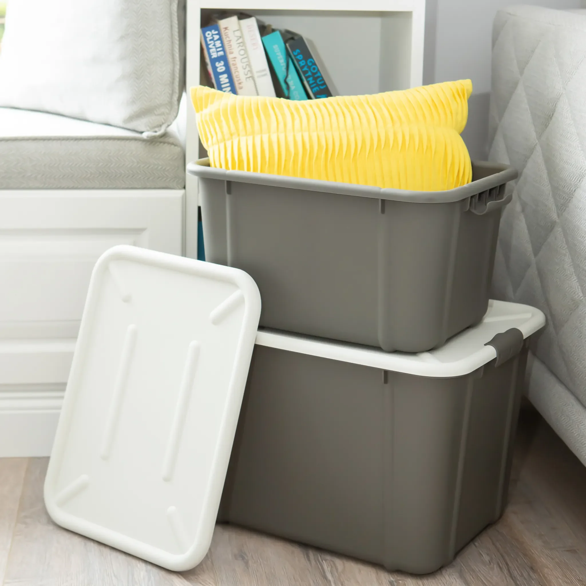 Highlights: Stapelbares Design, minimalistischer Look, langlebiges Material, zuverlässiger Schutz vor Staub und Feuchtigkeit, vielseitig einsetzbar in allen Wohnbereichen.