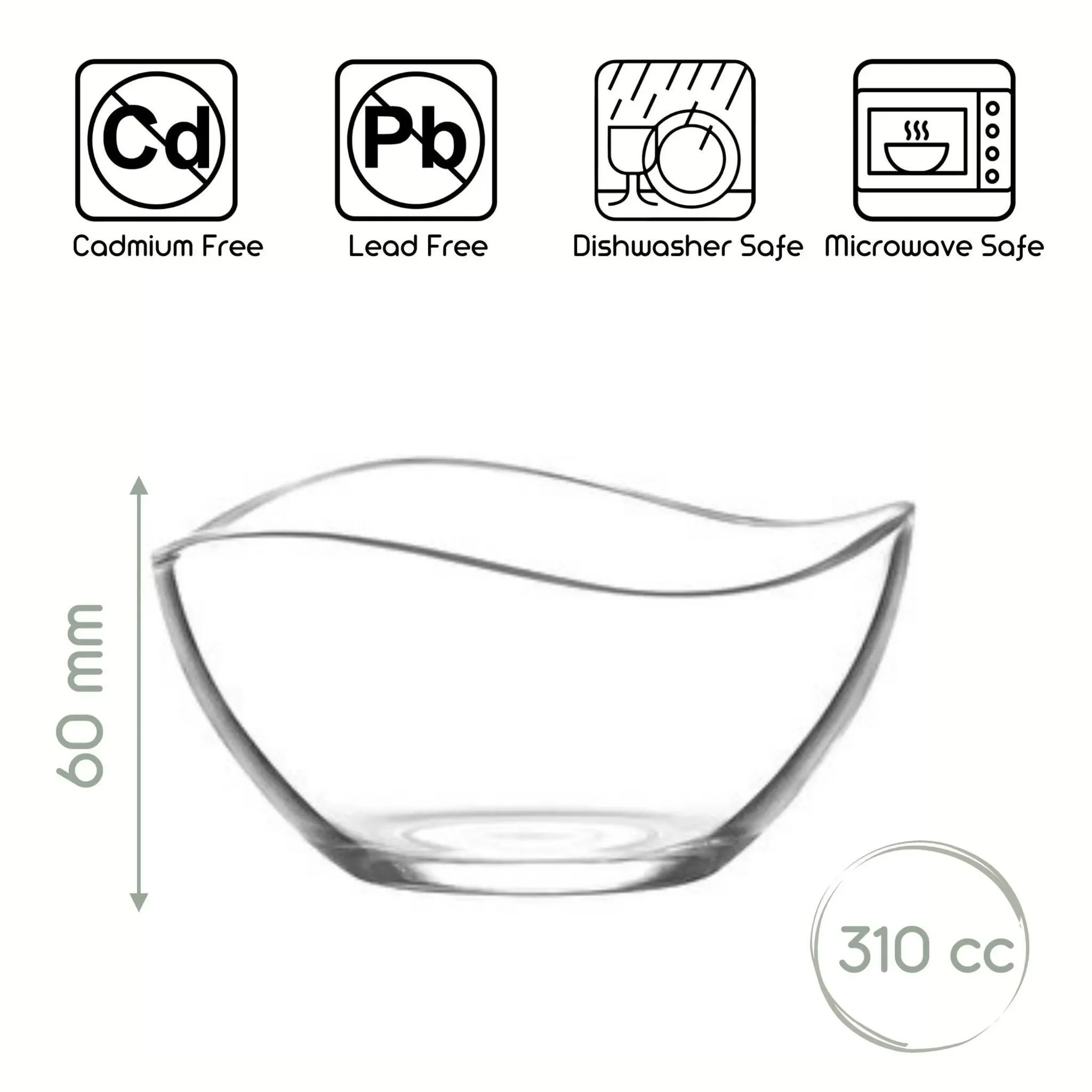 Das LAV Vira Glasschalen-Set (Modell VIR261F) umfasst 6 Schalen aus hochwertigem, lebensmittelechtem Glas. Jede Schale fasst 310 ml und eignet sich ideal für Desserts, Snacks, Vorspeisen oder Beilagen.