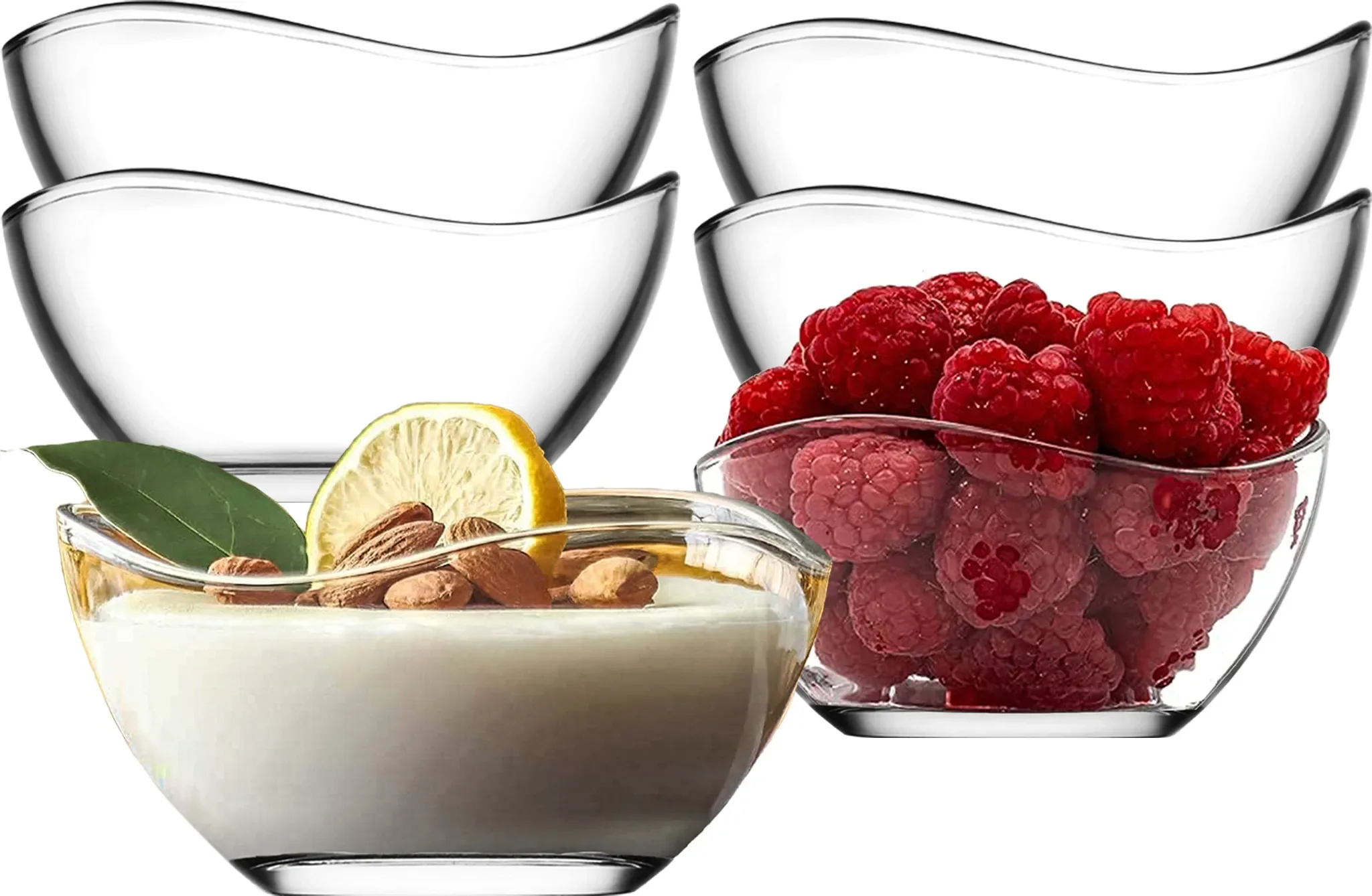 Das elegante, transparente Design mit sanft geschwungenen Linien wertet jeden gedeckten Tisch auf. Die Schalen sind spülmaschinenfest, kältebeständig, stapelbar und somit platzsparend aufbewahrbar.